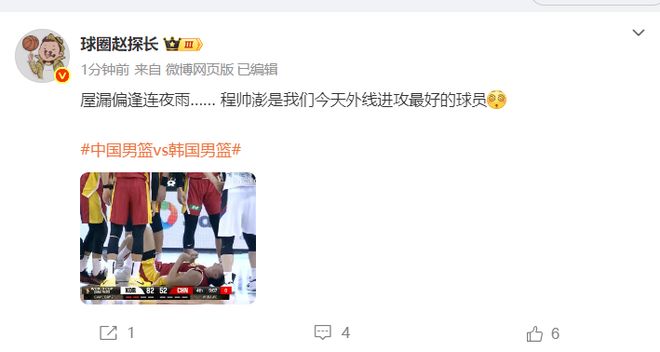 导演我躺哪直言:韩国队太脏了,胡明轩顶替程帅澎终于通过罚球得分。