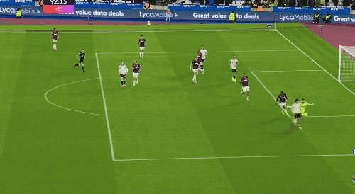 第87分钟,菲尔克鲁格的不断拼抢帮助西汉姆联获得机会,鲍文的射门放了高射炮。